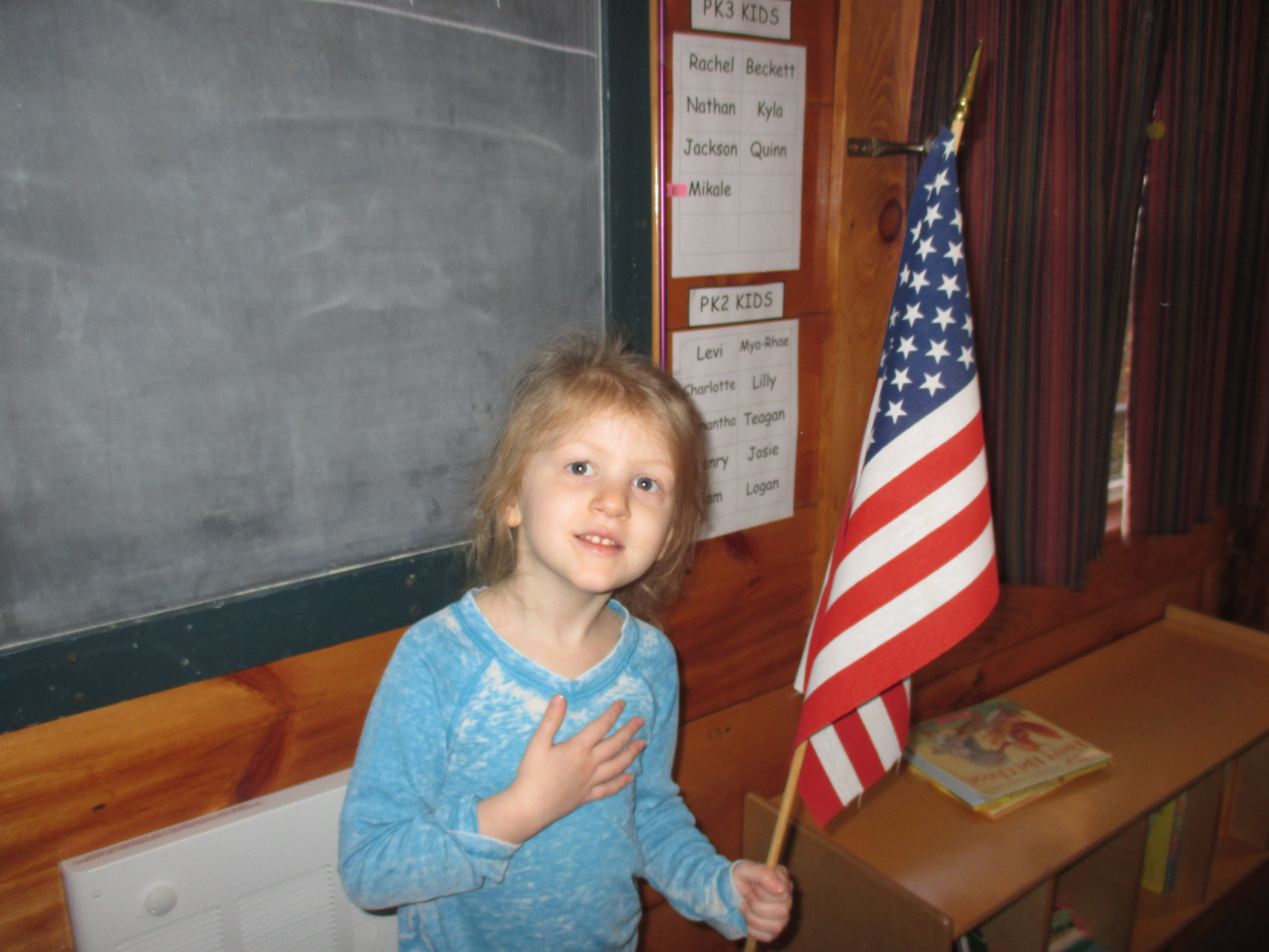 Julie: I hold the flag. We said the Pledging.