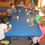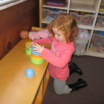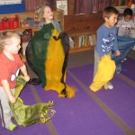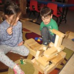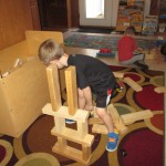 Jacoby: We had bananas and crackers for snack. We picked Top Book. We read Don’t Get Lost! They (the animals) looked kind of like robots to me. They played hide and go seek. They went for a splash. I think the tractor’s going to get the horse and the cow. I think they’re going to cook them and put them into the food.