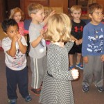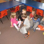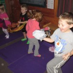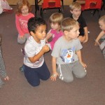 The children started learning the fall song Little Red Leaves. They danced like little red leaves, falling gracefully to the ground at the end.