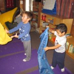 Today was Yoga Day! The children learned a few new poses, including rabbit, turtle and turkey. They sure do love working with the scarves!