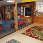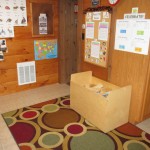 Logan: We did Yoga. Bunny and turtle (poses). We have a new classroom because the block bucket is in a different part of the room. The blue table used to be there. The blue table is turned to an L shape.