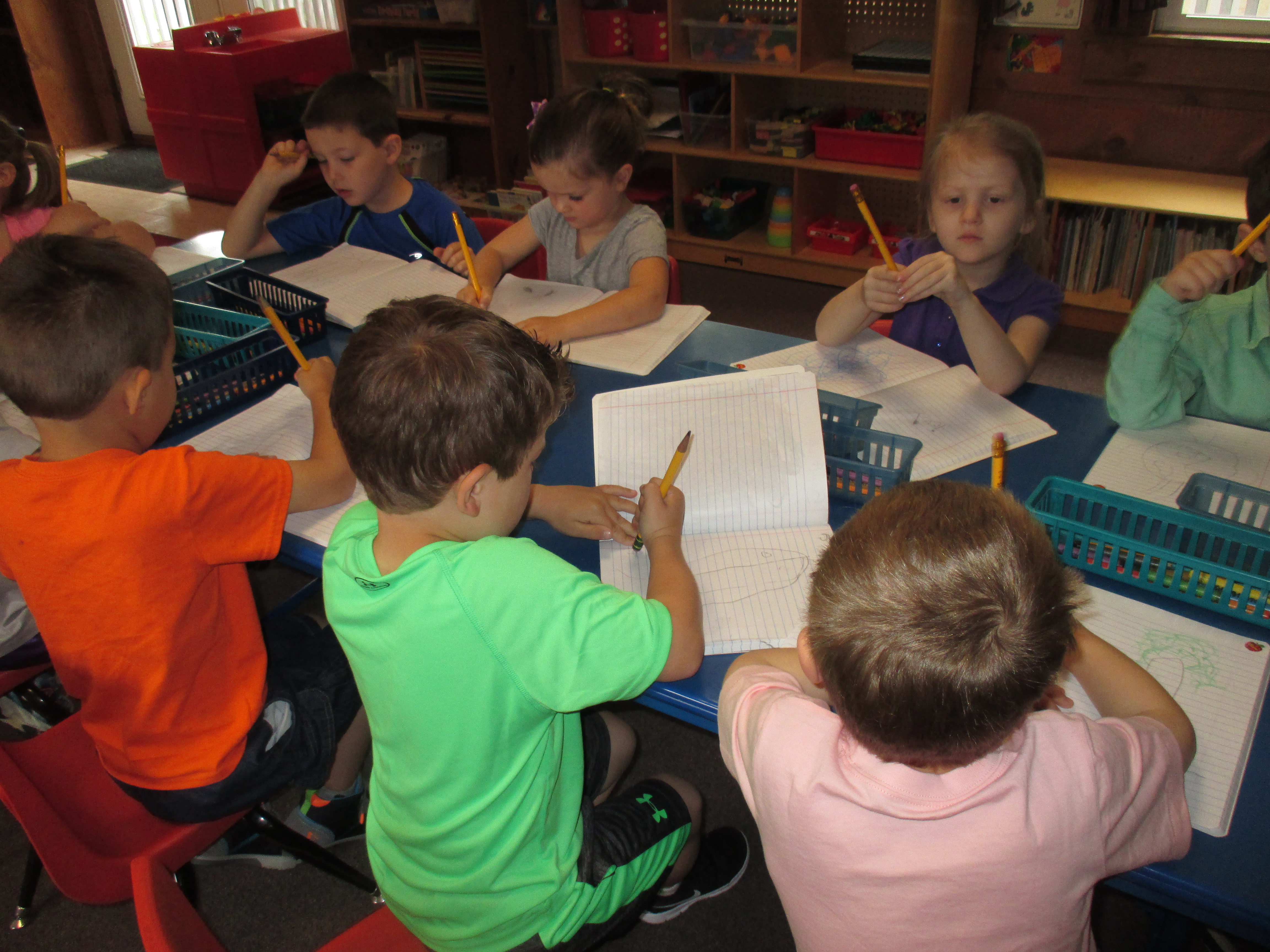 Reporting impacts the children’s early literacy skills in a big way. Questions and prompts from me give direction and clarification to the reporting process. Going over the events of the day in their minds, pulling out those bits of information they feel are important, and then articulating their thoughts in such a way that the reader gets a full picture is going to sharpen their powers of observation and make them more mindful of the unfolding school day. Thinking over the day also gives the children an opportunity to review the material we covered. Listening to their responses lets me know if I presented the material clearly enough to be understood.